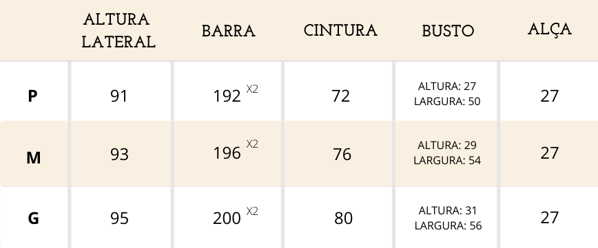 TABELA DE MEDIDAS